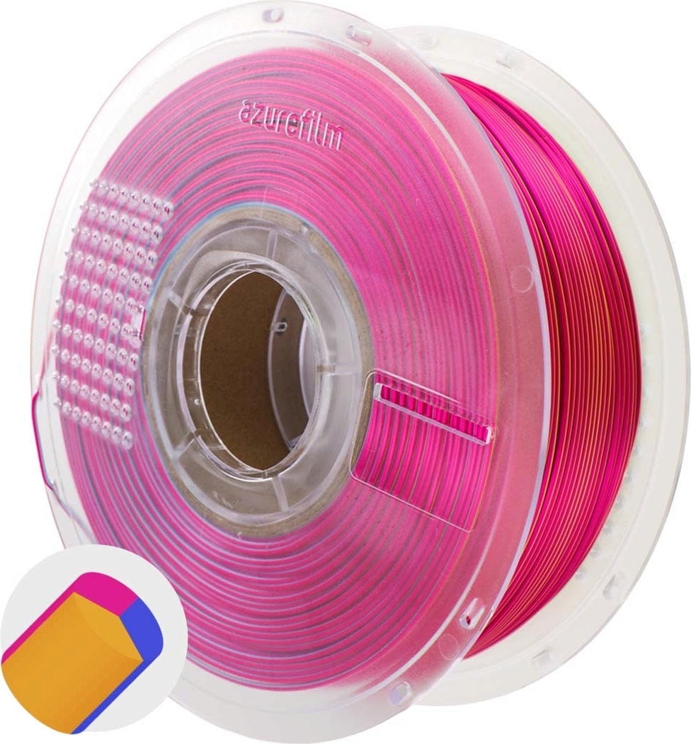 AzureFilm PLA Silk Multicolor adds not just colour but a touch of elegance to your prints. This filament combines the hassle-free handling of PLA with a silky, glossy finish that gives every object a premium look. Thanks to its special formulation, layer lines are beautifully concealed, giving your models a seamless, polished appearance.
