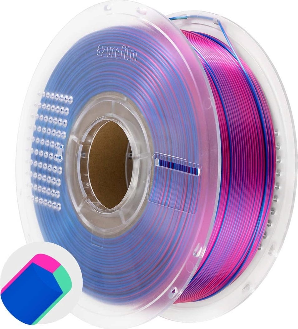 AzureFilm PLA Silk Multicolor adds not just colour but a touch of elegance to your prints. This filament combines the hassle-free handling of PLA with a silky, glossy finish that gives every object a premium look. Thanks to its special formulation, layer lines are beautifully concealed, giving your models a seamless, polished appearance.