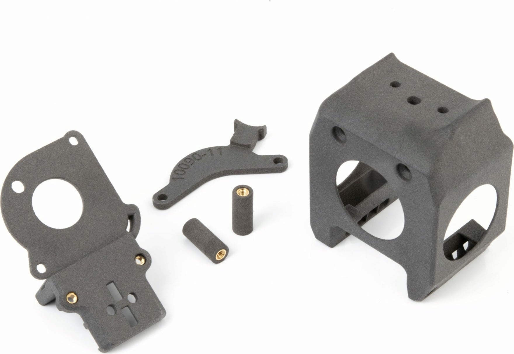 The plastic parts are made of grey polyamide (PA12) without colouring with a protective wax coating.