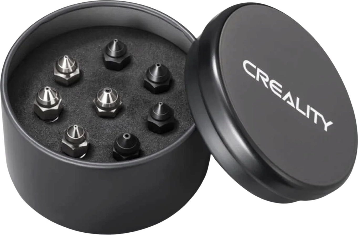 This nozzle set from Creality was specially developed for the K1 and K1 Max (2023)* 3D printers. The set comes with two types of nozzles: