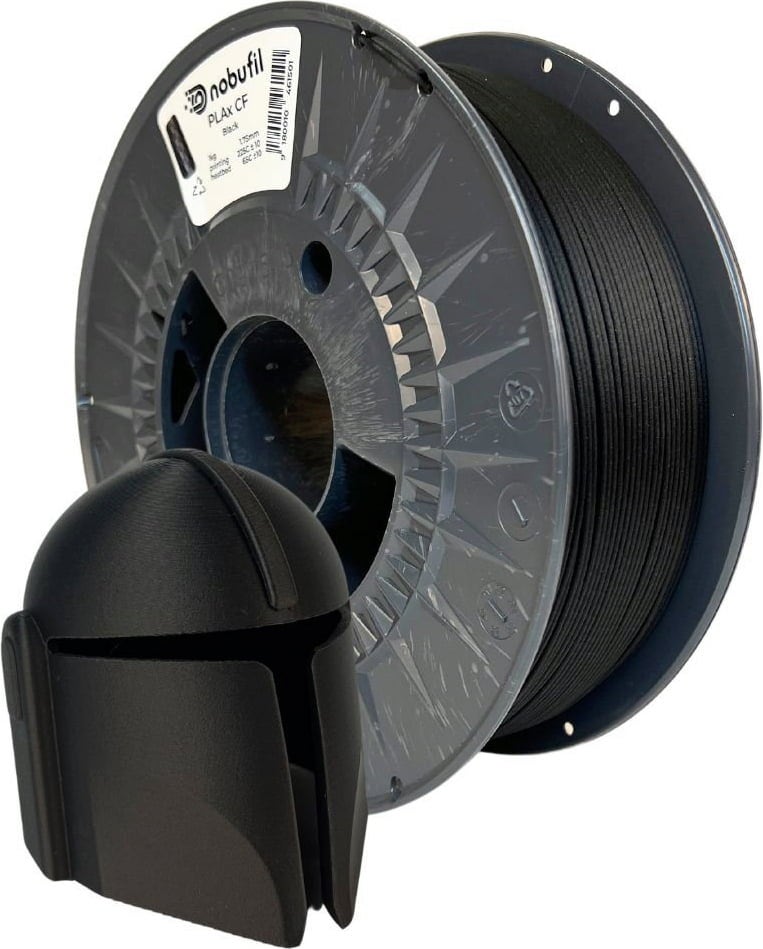 PLAx CF by Nobufil is a carbon-reinforced PLA filament made from recycled plastics created as production waste in industrial processing. Thanks to a special modification to increase impact strength and the addition of high-strength carbon fibre, this composite material offers a first-class combination of stability, lightness and impressive mechanical strength. It is particularly suitable for robust functional and technical applications.