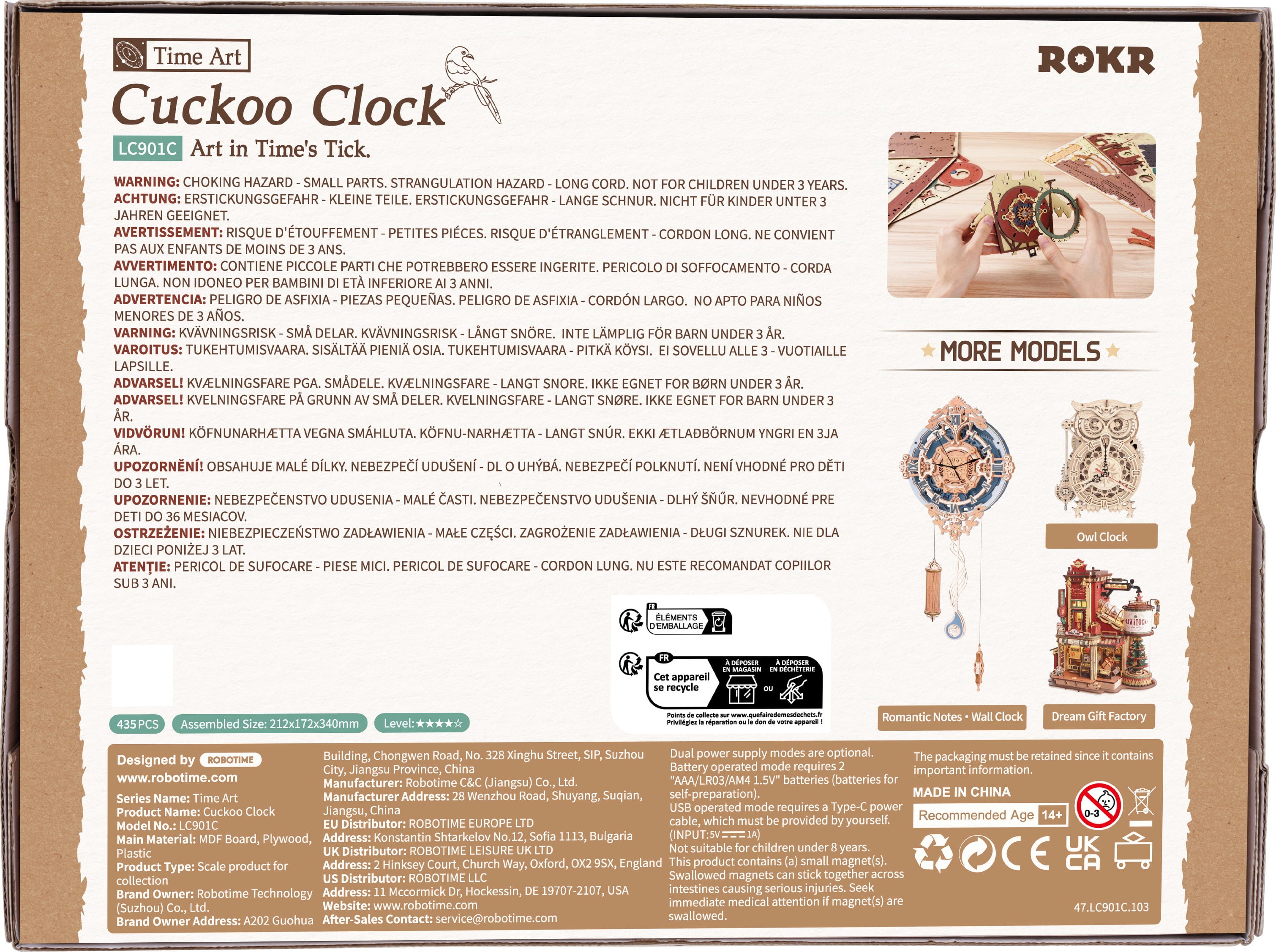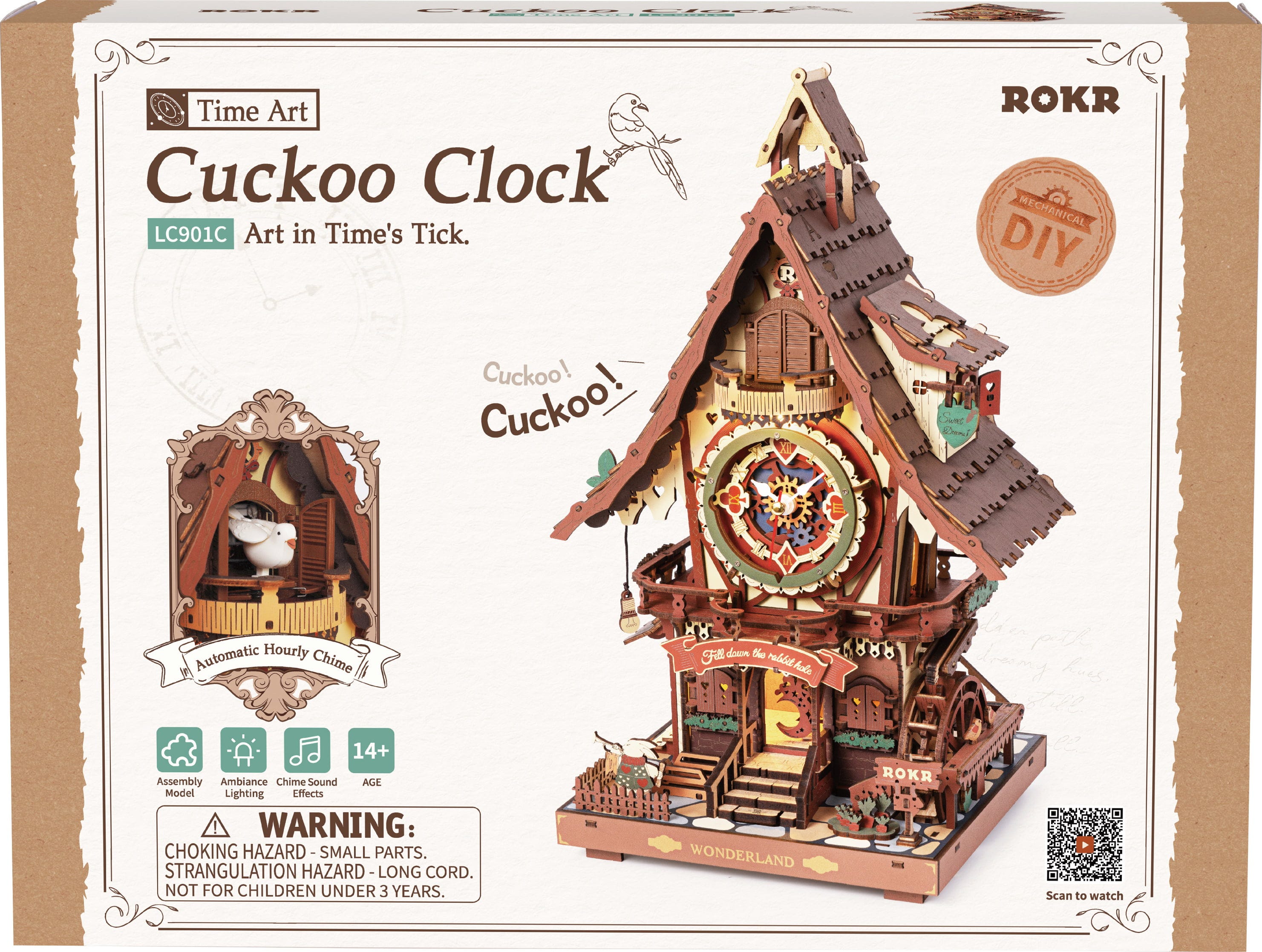The ROKR Cuckoo Clock is an intricately detailed 3D wooden puzzle that transforms into a fully functional timepiece. Combining classic horology with modern mechanics, it brings a cheerful "cuckoo" into your daily life - punctual, charming, and full of character.
