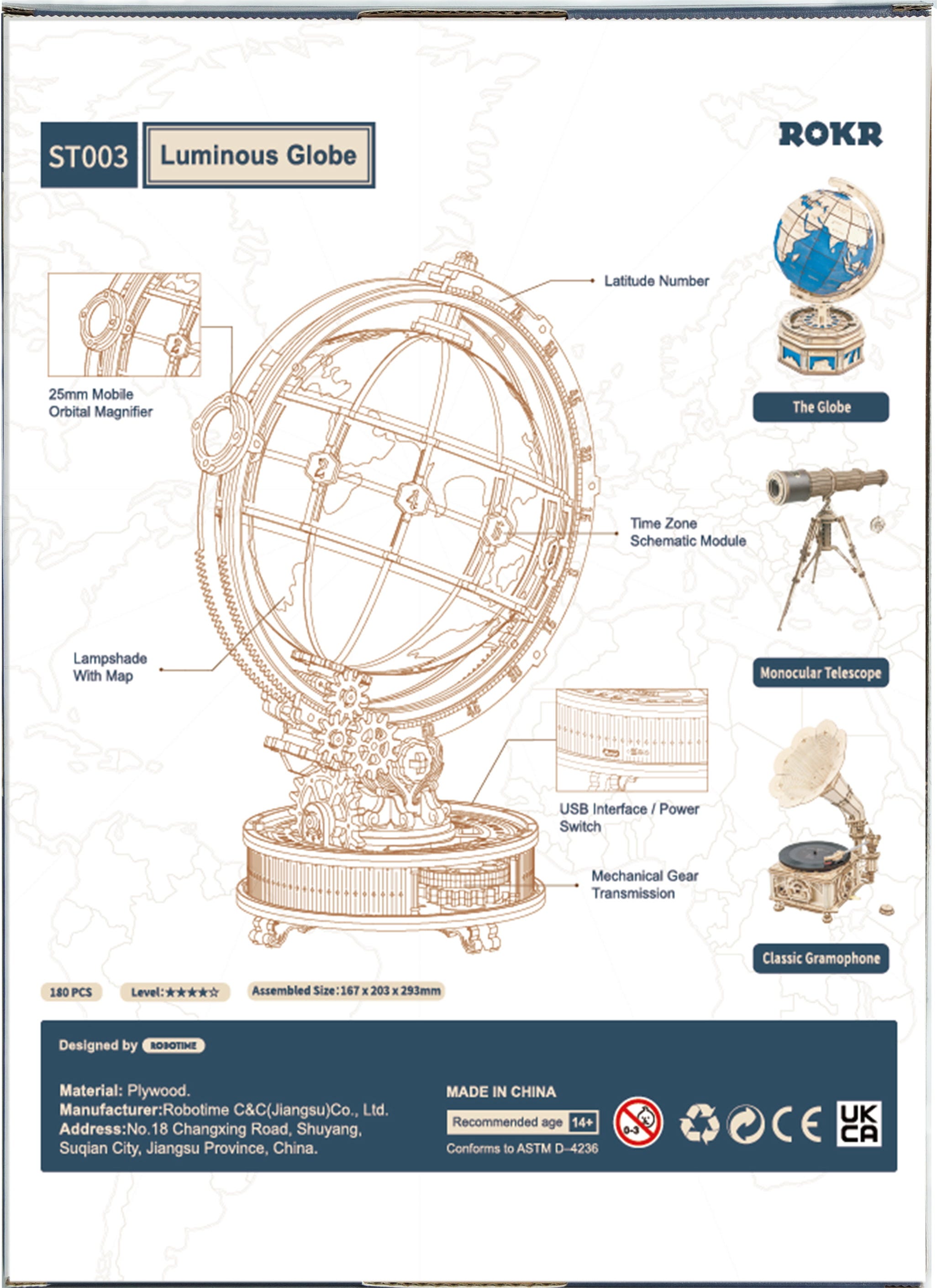 A Mechanical Journey: Within the base lies a gear-driven mechanism that enables the globe's smooth rotation. There is no hidden technology here- only fascinating mechanics designed to be seen and understood.